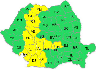 În Oltenia, vestul Transilvaniei şi Maramureş cantităţile de apă vor cumula local peste 25 l/mp, iar în zona Carpaţilor Meridionali se vor depăşi 60 – 70 l/mp.