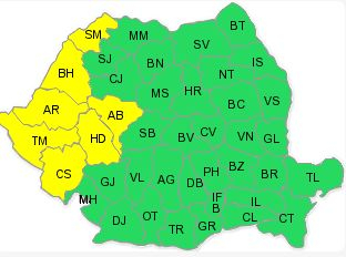 Atenționarea este valabilă pentru județele Alba, Caraș-Severin, Timiș, Arad, Hunedoara, Bihor și Satu Mare.