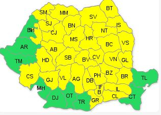 Atenționarea este valabilă de luni de la ora 16.00 până marți la ora 23.00.