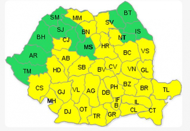 O a doua avertizare este valabilă în intervalul 6 martie, ora 16.00 – 7 martie , ora 16.00 pentru aproape toată țara.