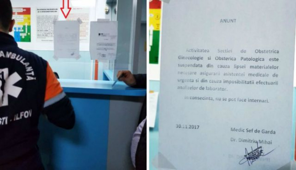 La intrarea în spital, a fost pus un anunț șocant: "Nu mai trimiteți cazuri de obstetricã-ginecologie, închidem secția pentru cã nu mai avem de nici unele!"