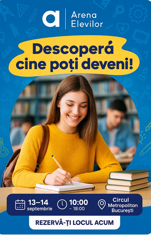 Arena Elevilor, cel mai mare eveniment de orientare în carieră și dezvoltare vocațională din Europa, revine anul acesta cu o ediție la care vor participa peste 100 de speakeri din domenii cheie. Evenimentul va avea loc pe 13 și 14 septembrie 2025, la Circul Metropolitan București.