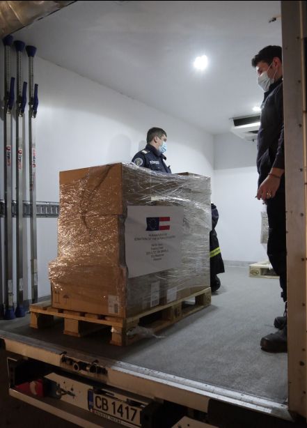 Austriecii au asigurat transportul medicamentelor în România. Ele au ajuns la Centrul Național de Coordonare și Conducere a Intervenției, recepția fiind făcută de IGSU. Medicamentele vor intra în stocurile UNIFARM, iar de acolo vor fi distribuite la unitățile sanitare din București și din țară.