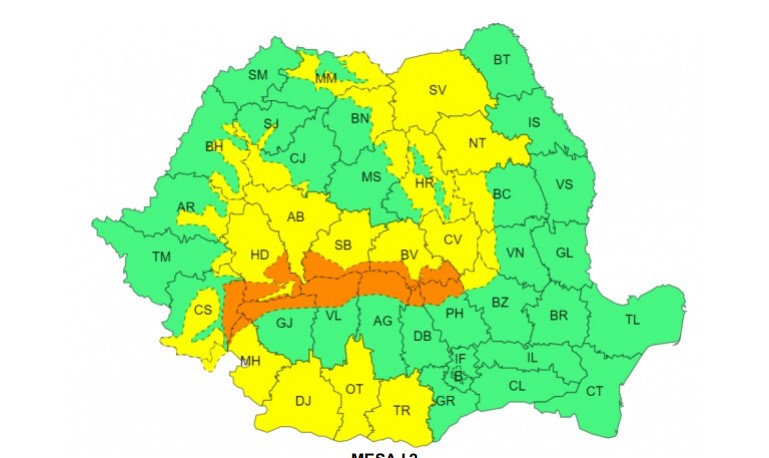 De asemenea, pentru aceeași perioadă, în Carpații Meridionali, este în vigoare un cod portocaliu de vânt puternic. Vitezele vântului în zona înaltă a Carpaților Meridionali (peste 1500 m) vor depăși 110-120 km/h, generând condiții periculoase cu viscol puternic și vizibilitate foarte redusă.