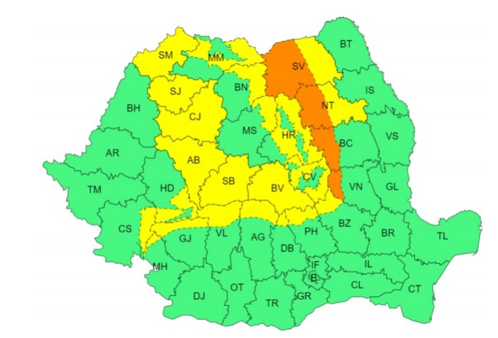 De asemenea, pentru intervalul 25 decembrie, ora 02:00 – 25 decembrie, ora 16:00, este emis un cod portocaliu pentru vânt puternic în zona înaltă a Carpaților Orientali. Acesta va sufla cu rafale de peste 120-130 km/h, accentuând pericolul și generând condiții extrem de dificile.