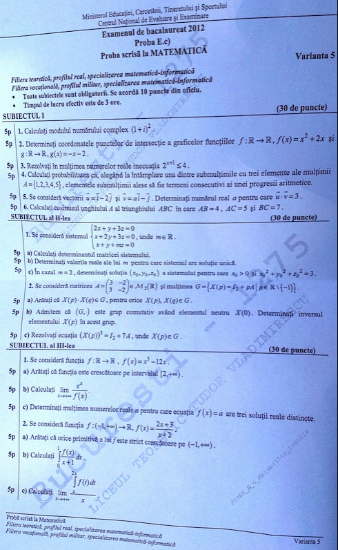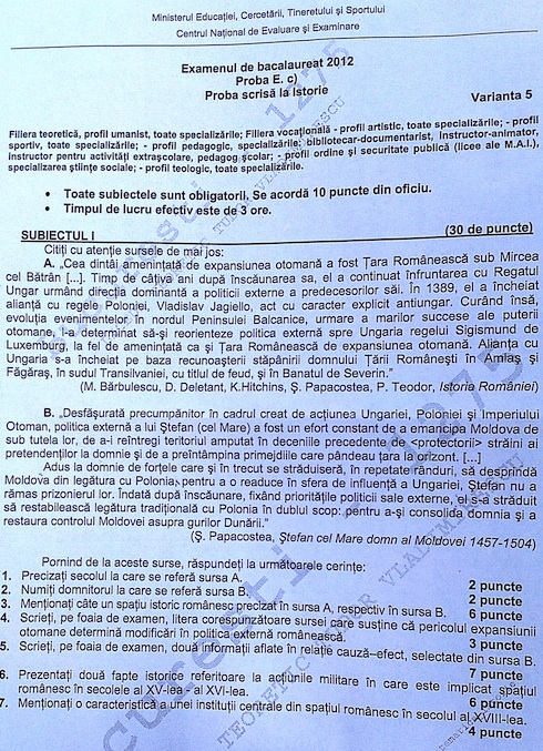 UPDATE: La Matematică a ieșit Varianta 5 de subiect, iar la Istorie, tot varianta 5.