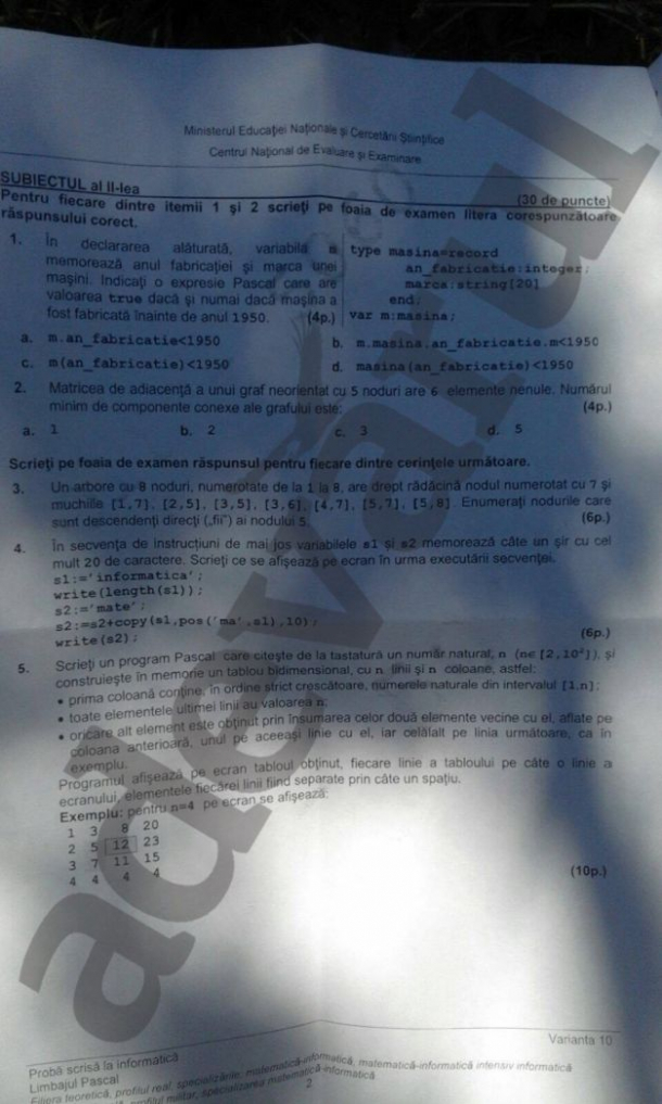 BAC 2016: Subiectele de la proba a III-a, profil Real. Biologie și Informatică (FOTO)
