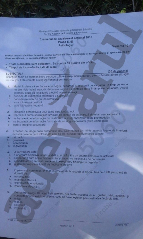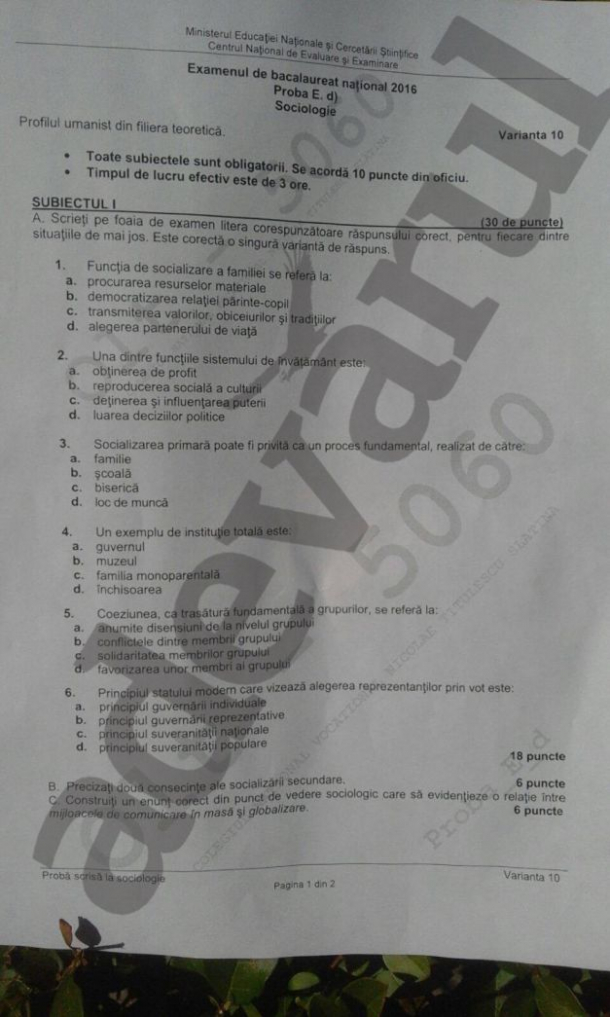 BAC 2016: Subiectele de la proba a III-a, profil uman. Geografie, Psihologie, Sociologie și Logică (FOTO)