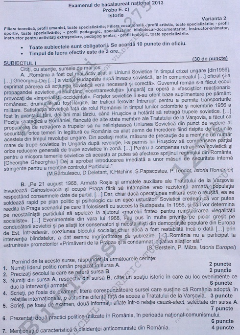 Atât la matematică cât și la istorie a fost extrasă Varianta 2.