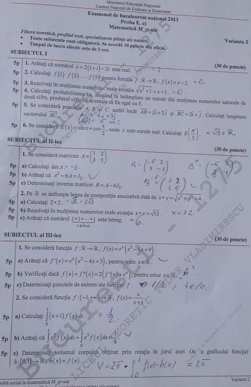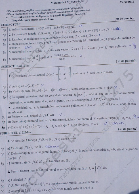 Elevii de la profilul tehnologic au avut de calculat radicali, matrici, polinoame și o analiză matematică din integrale.