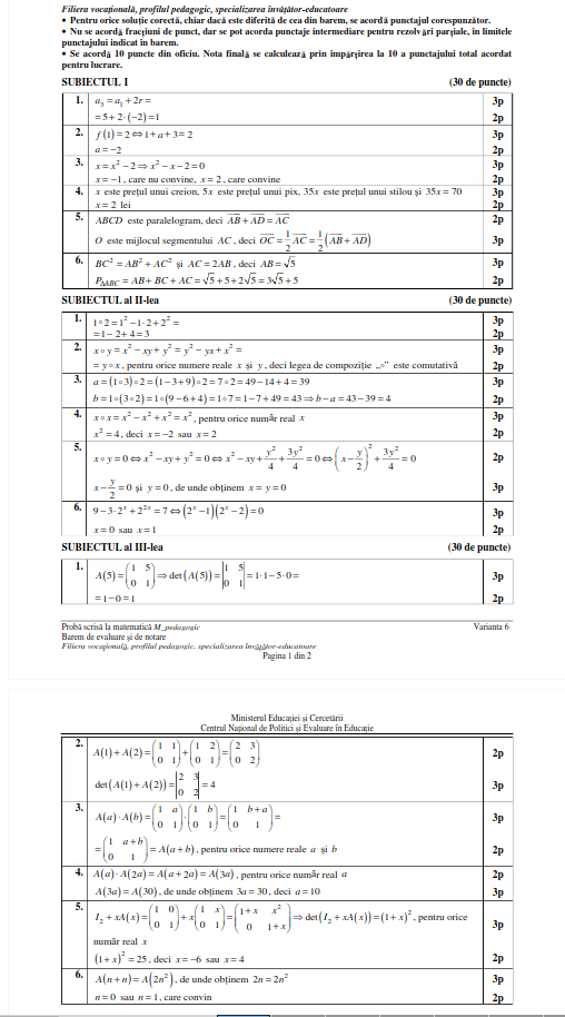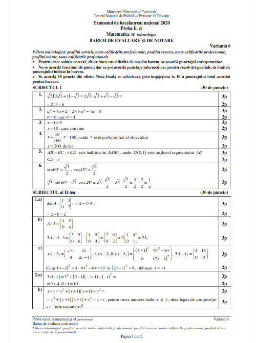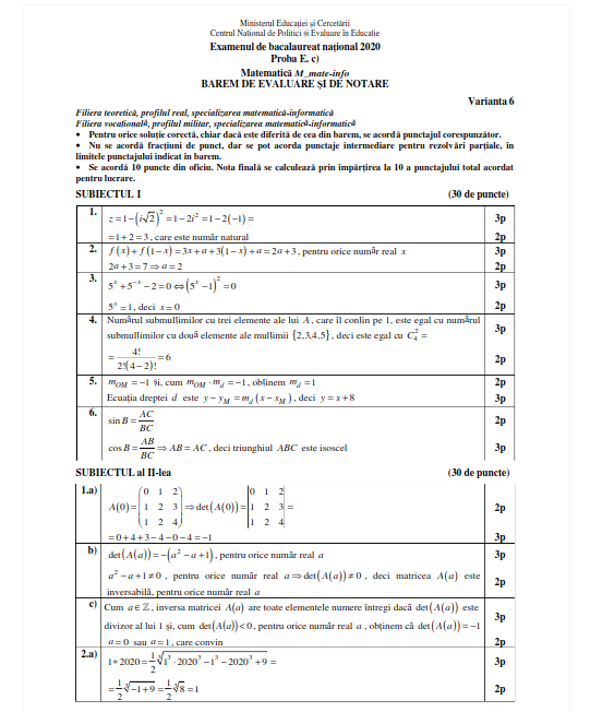 Bacalaureat 2020. Baremul de corectare la Matematică