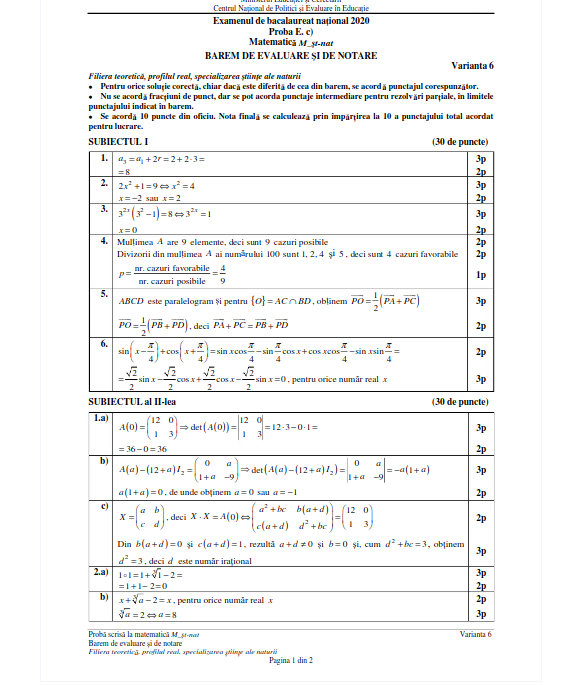 Bacalaureat 2020. Baremul de corectate la matematică