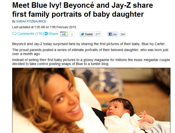 Beyonce a preferat să nu vândă primele fotografii cu Ivy unei reviste glossy, în schimbul a milioane de dolari, postând imaginile pe un blog creat special pentru această ocazie.