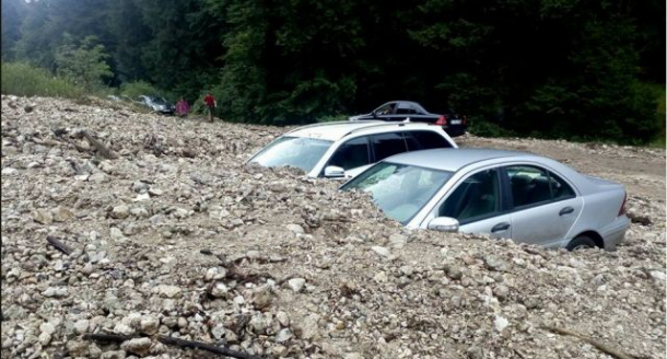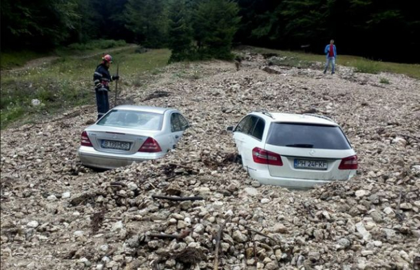 Două mașini aui fost îngropate în piatră în urma unei viituri produsă în localitatea Zărnești din județul Brașov, potrivit Mediafax.