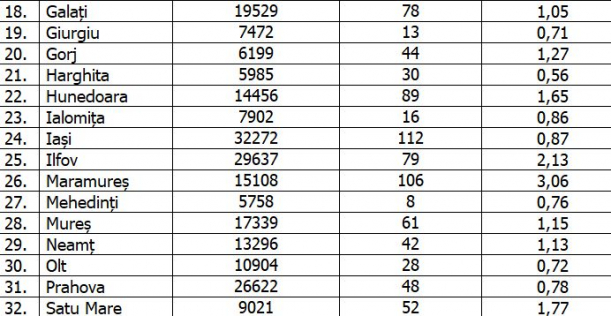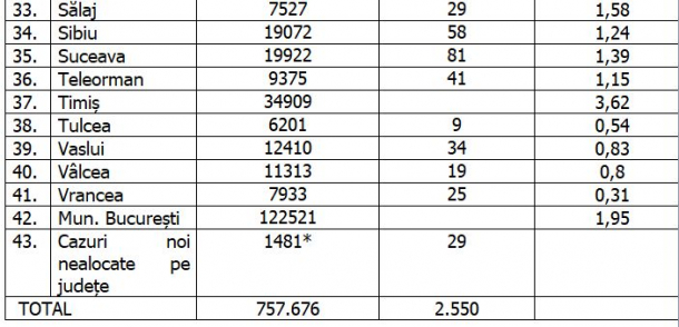Media națională e de 1.72 la mia de locuitori, în utimele 14 zile.