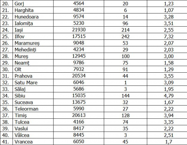 Ilfovul e urmat deurmat de Constanța (7.21) și București (6.34).