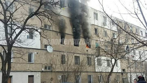 O explozie urmată de un incendiu a avut loc, duminică, la etajul al doilea a unui bloc de locuinţe din municipiul Buzău!
