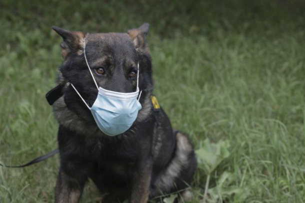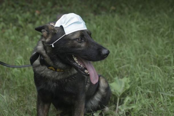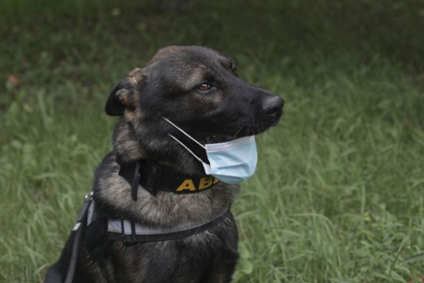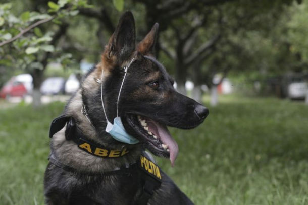 Câinele polițist Abel ne arată cum se poartă CORECT masca de protecție. Exemple de așa DA și așa NU (FOTO)