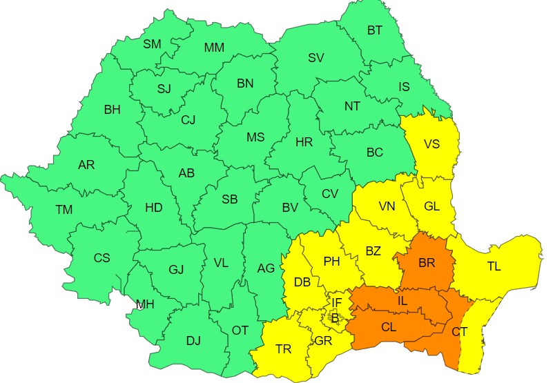 Codul portocaliu de caniculă, valabil pe 3 august, este activ pentru județele Călărași, Ialomița, Brăila și partea continentală a județului Constanța. Aici, temperaturile maxime vor atinge 38-39 de grade Celsius, iar indicele temperatură-umezeală (ITU) va depăși pragul critic de 80 de unități. Minimele nocturne nu vor scădea sub 20 de grade, caracterizând nopți tropicale.