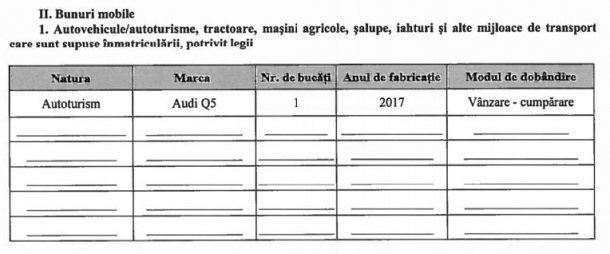Acest automobil nu apare în declarația de avere din 2018 a ministrului, ceea ce înseamnă că a fost cumpărat în ultimele 12 luni.