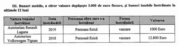 De asemenea, din cea mai recentă declarație de avere a acesteia reiese că Dan a vândut cele două mașini pe care le deținea. Este vorba despre un Volkwagen Tuguan din 2012, pentru care a primit 12.800 euro și un Renault Laguna din 2006, vândut cu 1.000 de euro.