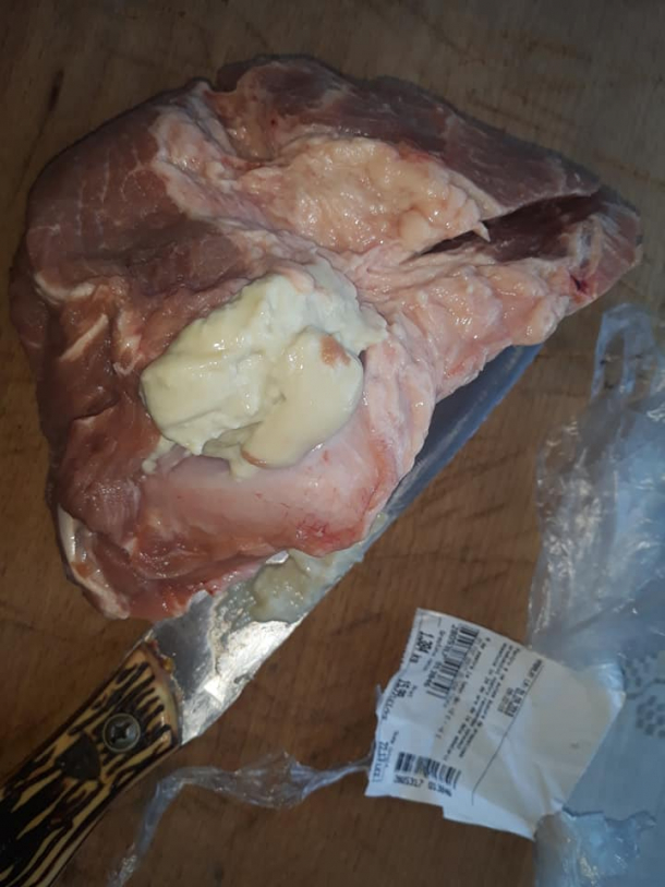 Abia după ce a ajuns acasă, cumpărătorul a început să pregătescă bucata pentru gătit, dar, în momentul în care a feliat-o, a descoperit că mustea de puroi, relatează ziare.com.