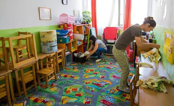 Astfel, copiii merg la grădinița amenajată în câteva spații ale Școlii Gimnaziale 1, cu program până la ora 12:00.