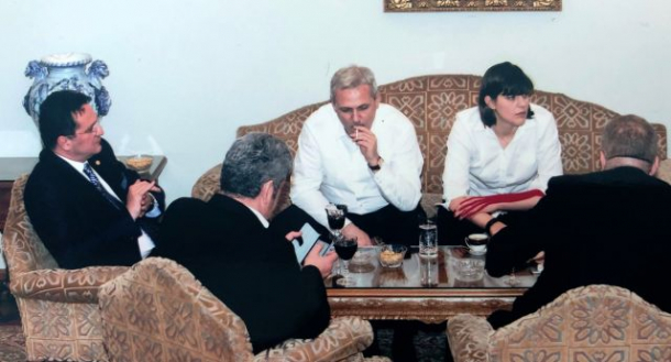 Laura Codruța Kovesi, șefa DNA, avea mâna în ghips. Canapeaua din stânga, cum treci de holul de intrare, în sala principală. Acolo au stat câteva zeci de minute Liviu Dragnea și șefa DNA, Laura Codruța Kovesi. Din când în când, el îi atingea ghipsul. Ne mutăm în sala principală. Acolo se afla și Sebastian Ghiță. Tocmai dăduse un interviu la EvZ. Kovesi, ghidușă sau supărată, îl amenință pe deputatul PSD cu mâna în ghips”, povestea Dan Andronic.