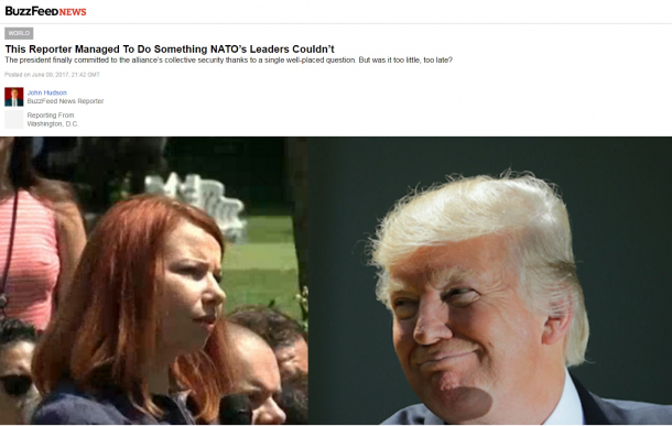 Acest reporter a reușit ceea ce liderii NATO nu au fost în stare – titra presa internațională, prezentând imaginea Ramonei Avramescu (TVR) care printr-o întrebare bine plasată l-a determinat pe liderul SUA să confirme clar angajamentele generate de articolul 5 al Acordului NATO, privind protecția statelor membre. Lucru pe care îl solitaseră și membrii delegațiilor alianței la recentul summit de la Bruxelles, dar Trump evitase să se pronunțe tranșant.