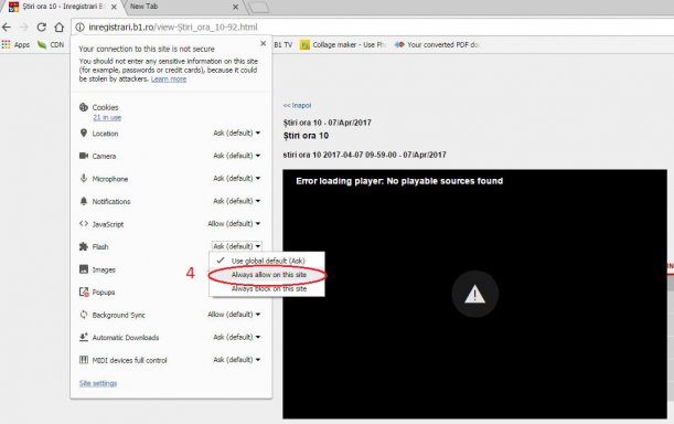(4) Apoi selectați Always allow on this site, după care dați un refresh la pagină (puteți apăsa F5 pentru refresh )