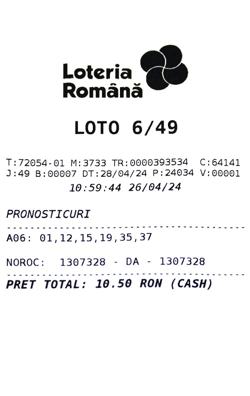Reamintim faptul ca biletul norocos a fost jucat la agenția 72-054 din sectorul 2, București și a fost completat cu o variantă simplă la Loto 6/49 și o variantă la Noroc .