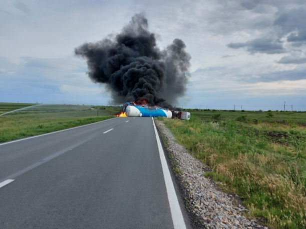 Accidentul a avut loc joi, 3 iunie, pe DN21A, la ieșirea din localitatea Bărăganu spre Țăndărei. Autocisterna condusă de un șofer de 61 de ani din Republica Moldova s-a răsturnat pe mijlocul șoselei. Bărbatul a supraviețuit. A suferit răni ușoare și nu a necesitat internarea în spital.