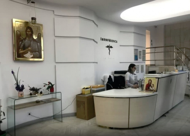 „Imunomedica – Centrul de prevenție, diagnostic și tratament Sfântul Ioan Botezătorul” e numele ales de latifundiarul din Pipera, cel care și-a pus amprenta pe aproape toți pereții de la toate etajele clădirii respective și chiar și în fiecare cabinet.