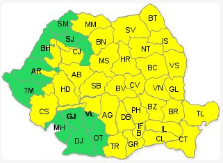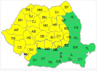 Totodată, până marți la ora 10.00 rămâne în vigoare o atenționare cod galben pentru zonele de nord, vest, sud-vest și centru ale țării, unde se vor produce ploi teorențiale, însoțite de intensificărui ale vântului și descărcări electrice.