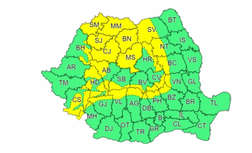 Administrația Națională de Meteorologie a emis un Cod galben de ninsori viscolite temporar pentru județele Satu Mare, Sălaj, Maramureș, Cluj, Bistrița-Năsăud și Mureș. Atenționarea a intrat în vigoare la ora 12 și va fi valabilă până vineri dimineață, la ora 2.