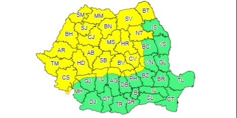 Meteorologii au emis un cod galben de furtuni pentru 28 de județe ale țării