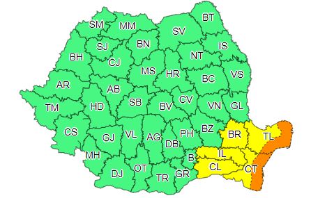 Atenționarea este valabilă până în data de 13 octombrie, ora 10:00 și vizează județele Brăila, Tulcea, Ialomița, Călărași și Constanța.