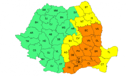 Județele vizate de codul portocliu sunt: Bacău, Vaslui, Vrancea, Galați, Brăila, Buzău, Prahova, Dâmbovița, Ilfov, București, Călărași, Giurgiu și Teleorman.