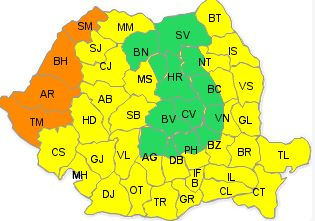 Meteorologii au emis o avertizare de cod portocaliu de caniculă pentru marți, în județele Timiş, Arad, Bihor şi Satu Mare și pentru miercuri, în Banat, Crişana, Maramureş, vestul şi nordul Transilvaniei, precum şi în cea mai mare parte a Moldovei, anunță ANM.