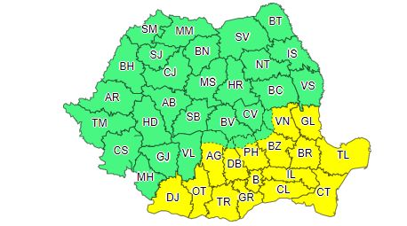 Astfel, ANM a emis un cod galben de val de căldură și disconfort termic ridicat valabil pe tot parcursul zilei de azi în sudul și sud-estul țării. Temperaturile maxime se vor situa în general între 33 și 37 de grade.