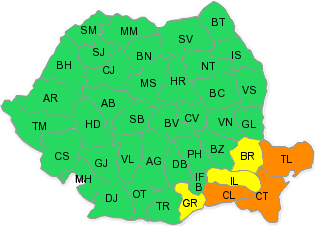 ANM a emis joi un cod portocaliu de ploi abundente pentru judeţele Constanţa, Tulcea şi Călăraşi, valabil de vineri, ora 21:00, până sâmbătă, ora 15:00.