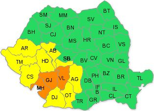 În cursul nopţii de duminică spre luni (27/28 iulie), în judeţele Mehedinţi, Gorj şi Vâlcea va ploua torenţial şi se vor cumula local cantităţi de apă de 50…70 l/mp şi izolat peste 80 l/mp.