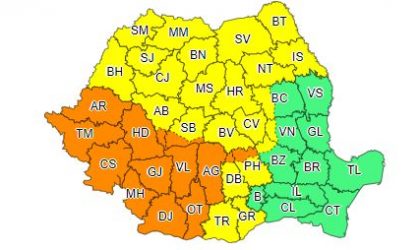 Administrația Națională de Meteorologie (ANM) a emis mai multe avertizări de cod galben și portocaliu de căldură și disconfort termic, respectiv de vijelii și instabilitate atmosferică accentuată.