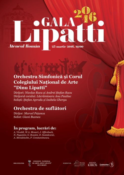 Colegiul Național de Arte „DINU LIPATTI” din București va susține un concert vocal- simfonic la ATENEUL ROMÂN, „ Gala Lipatti”, miercuri, 23 martie 2016, ora 19:00.