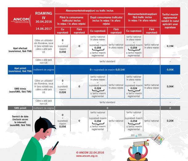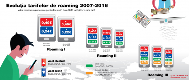Începând cu 30 aprilie 2016, tarifele de roaming vor fi mai mici, indiferent de companie. Aceasta reprezintă prima etapă din aplicarea unui pachet telecom, adoptat de Parlamentul European. Acesta prevede interzicerea taxelor suplimentare pentru „roaming” la utilizarea telefoanelor mobile în alte state din UE începând cu iunie 2017, potrivit ANCOM.