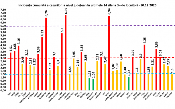 În ceea ce privește rata de incidență a cazurilor, aceasta a ajuns în Capitală la 6,76. De asemenea, cea mai gravă situație este înregistrată în județul Constanța (6,99), urmat de județul Ilfov (6,94).