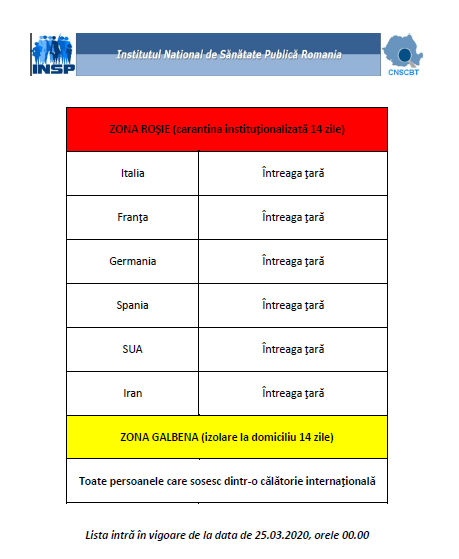 Totodată, Institutul Național de Sănătate Publică a actualizat lista țărilor incluse în zona roșie.
