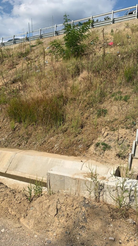 De asemenea, din fotografii se poate vedea că în drumul tehnologic aflat la baza terasamentului, o porțiune din autostradă se desprinde.