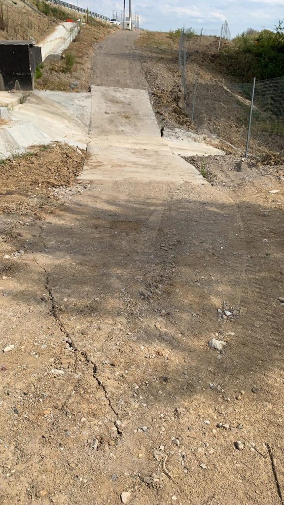 De asemenea, din fotografii se poate vedea că în drumul tehnologic aflat la baza terasamentului, o porțiune din autostradă se desprinde, potrivitpresshouse.ro.