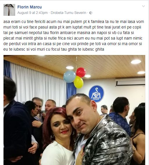 Bărbatul a lucrat un timp în Germania, dar se întorsese în țară pentru a încerca să se împace cu iubita lui. Pentru aceasta, Florin Marcu a căutat-o neîncetat și chiar s-a filmat pe Facebook cerându-și scuze, plângând patetic și implorând ca femeia să îi mai dea o șansă, informează ProTv.